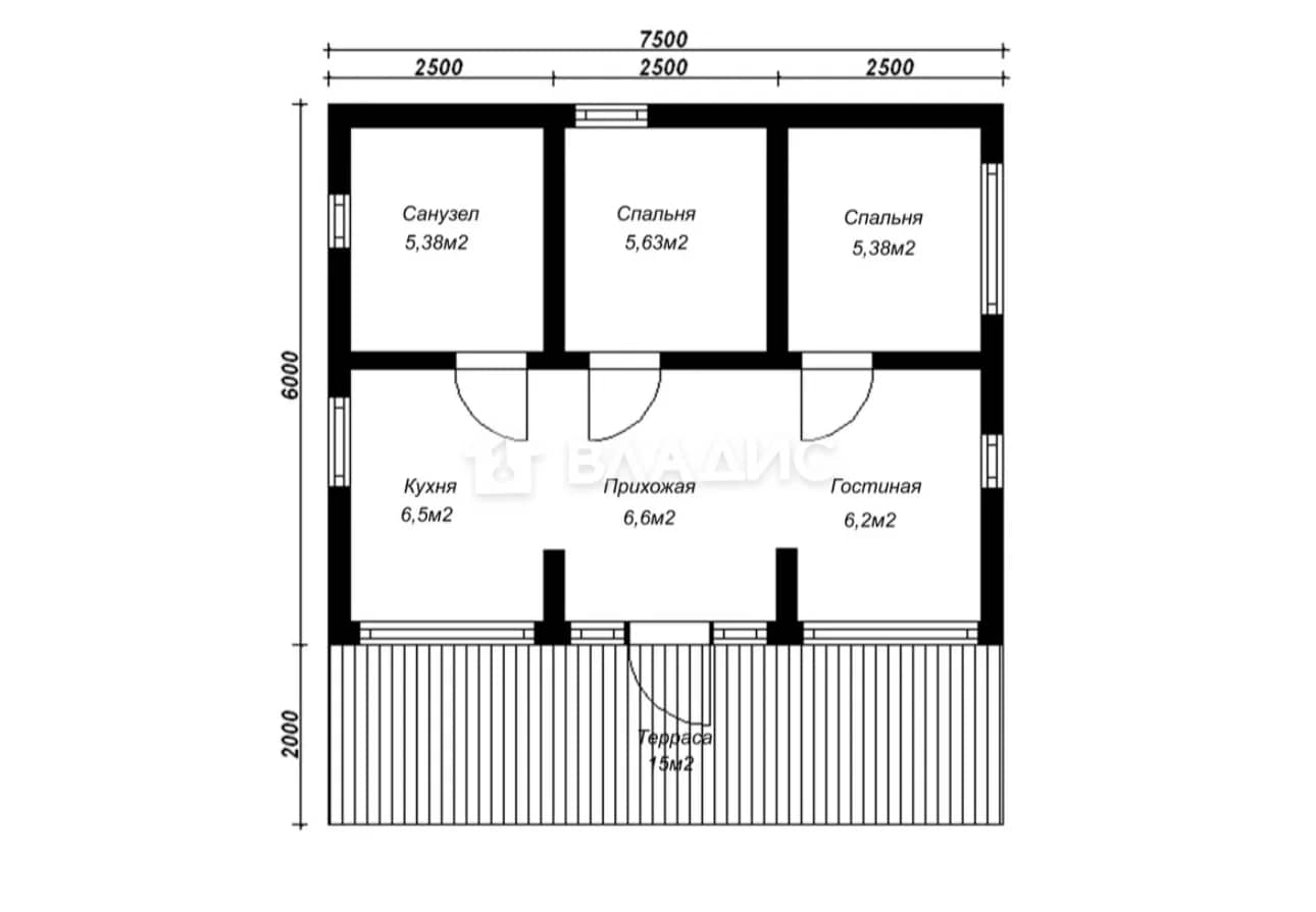 📐 60 м² 🚪 2 комнаты 📏 2,65 м